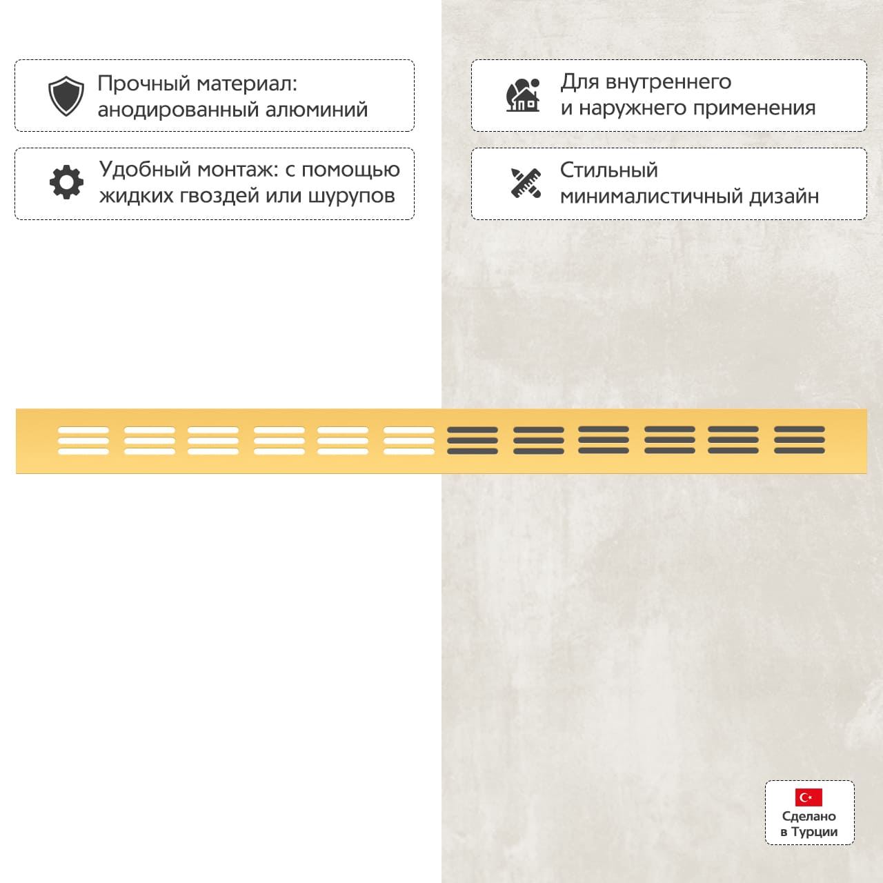 • Удобное крепление при помощи шурупов или жидких гвоздей