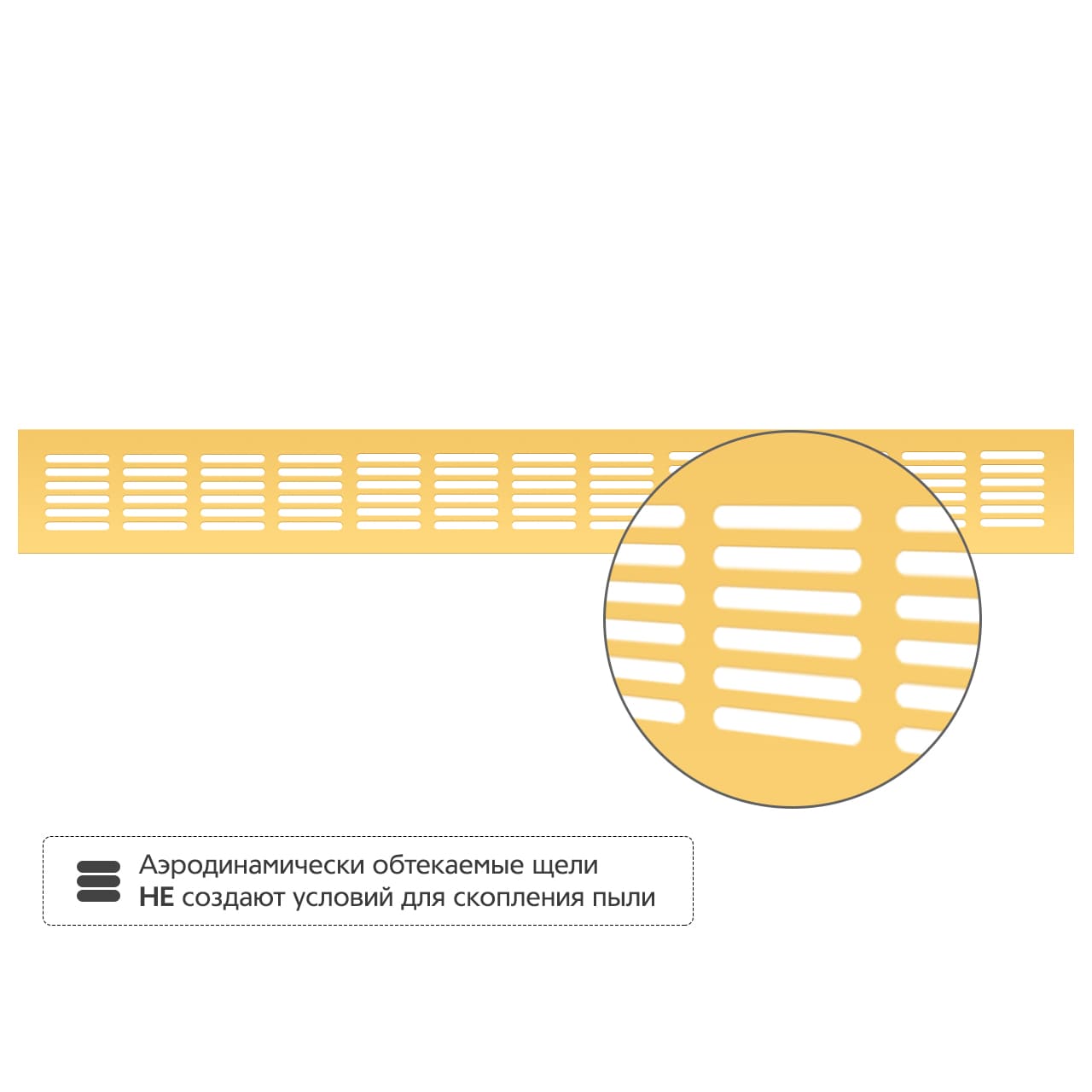• Аэродинамически обтекаемые щели не создают условий для скопления пыли