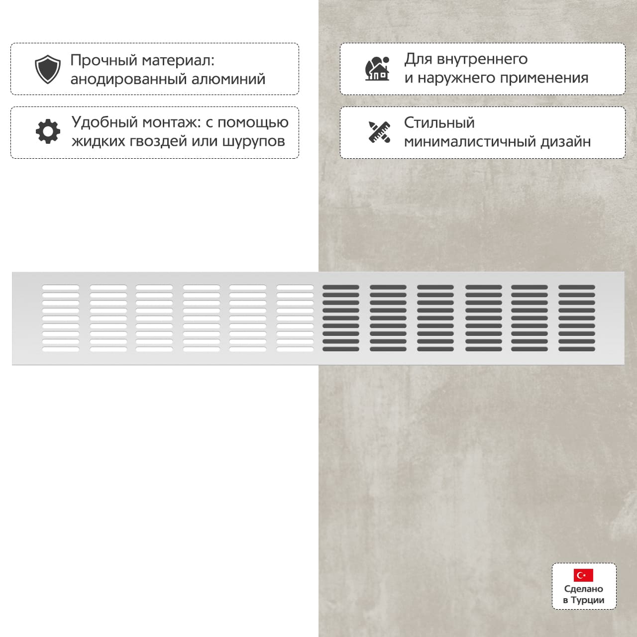 Идеально при монтаже в подоконники для правильного распределения воздуха от центрального отопления, обшивки радиаторов, дверей, мебели.