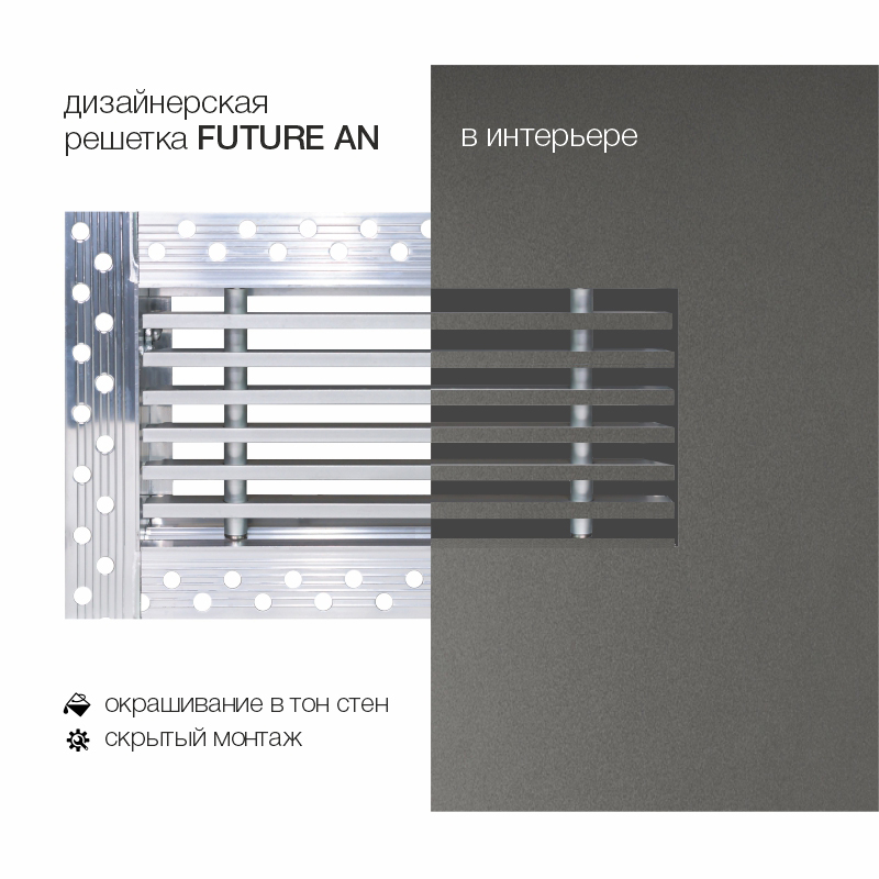 FUTURE-10 - дизайнерская решетка для скрытого монтажа от известной итальянской компании BROFER. Разработана специально для тех, кто выбирает стиль и качество в оформлении интерьера и продумывает каждую деталь. Используется в системах вентиляции и кондиционирования как конечный декоративный элемент для подачи свежего или удаления загрязненного воздуха.