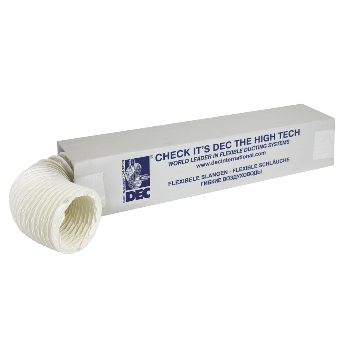 DEC использует современное оборудование, которое исключает смятие воздуховода при упаковке на производстве. Прочная картонная коробка защищает от деформации при транспортировке.