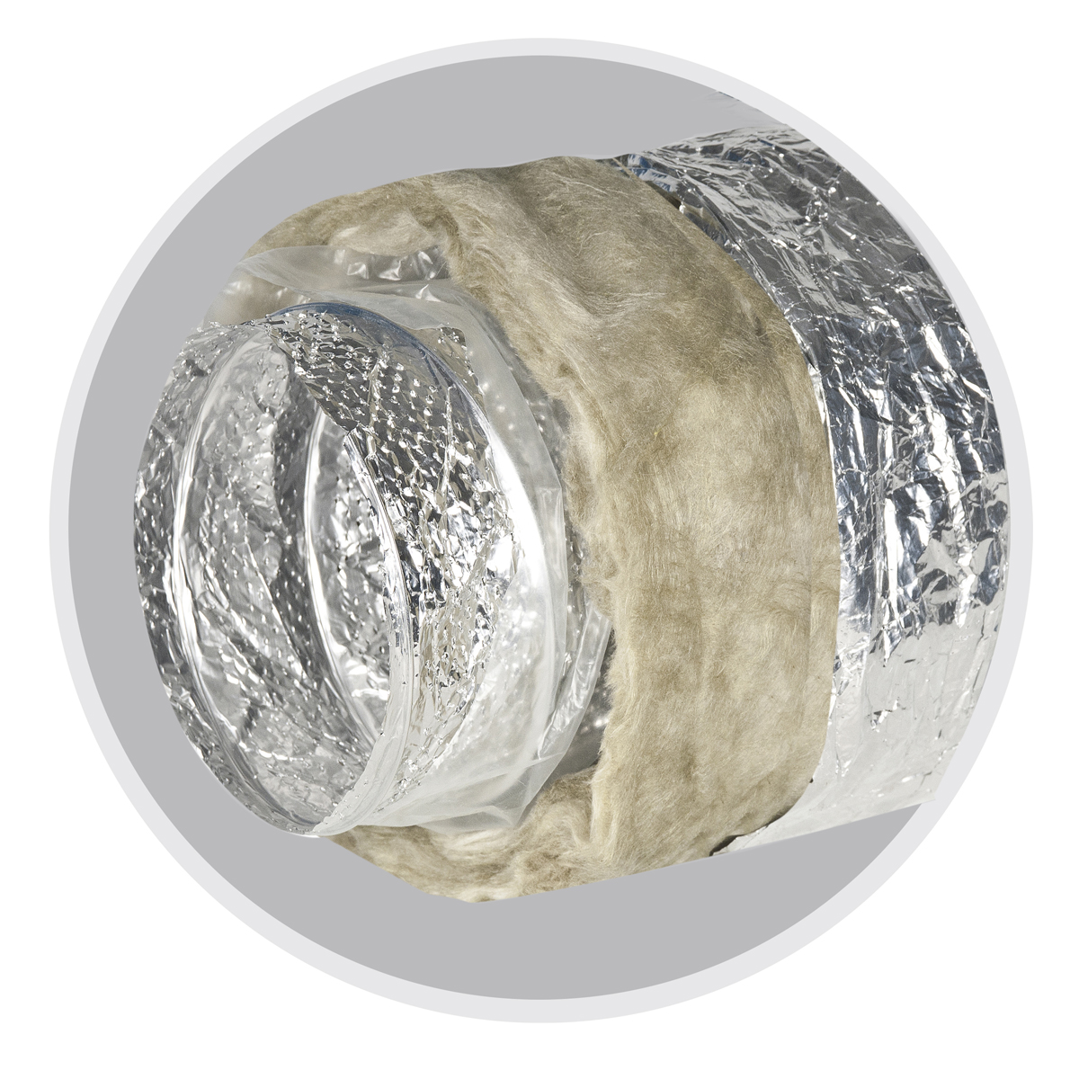 Тепло-звукоизоляционный слой толщиной 32 мм выполнен из материала высокого качества плотностью 12,5 кг/м³. Его коэффициент сопротивления теплопередаче - 0,8 м² К / Вт. Воздуховод с такими характеристиками позволяет эффективно снижать шум от работы вентиляции, делает пребывание людей в помещении комфортным.